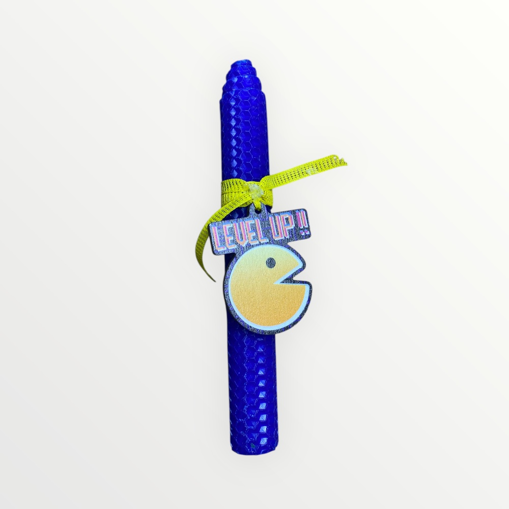 Λαμπάδα Πασχαλινή Pac Man σε χρώμα μπλε από μελισσοκέρι